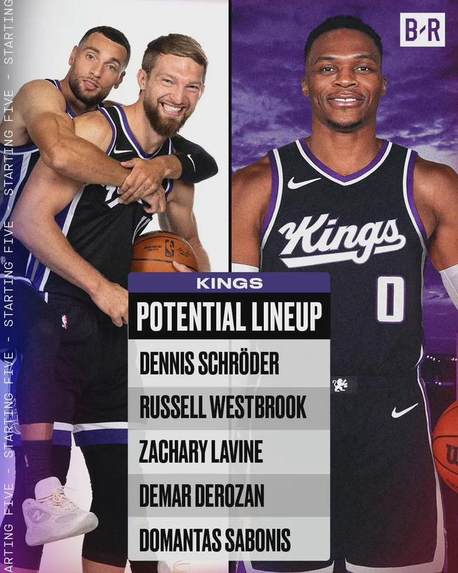 威少(36岁)+拉文(30岁)+德罗赞(36岁)+萨博尼斯(29岁),都是NBA全明星级别球员,就是有两个太老了,若是四人全部处于巅峰期,国王绝对大有可为,可惜没有如果。