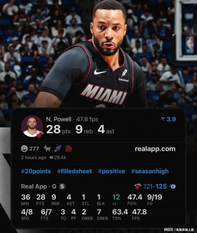 凑巧,鲍科比今日也上演了他的热火首秀!在迈阿密热火对阵奥兰多魔术的比赛里,鲍科比全场19投9中,三分8中4,7罚6中,高效轰下28分9板4助1断1帽,正负值+12。据统计,诺曼鲍威尔首秀28分为热火队史自2010年勒布朗詹姆斯(31分)以来球员首秀的最高分。